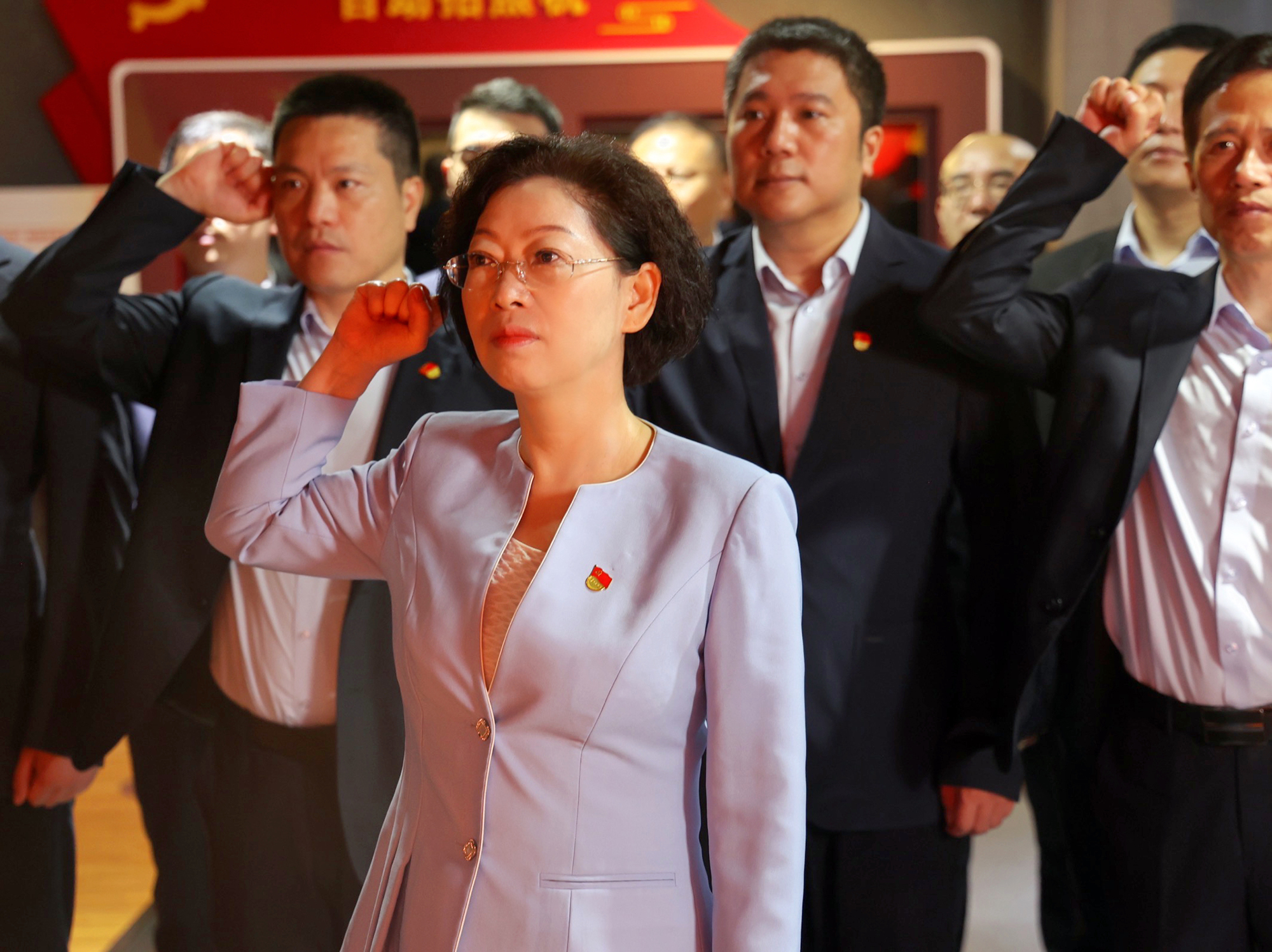 参观结束后,刘景萍董事长作为集团党组织负责人,带领营销管理团队全体党员在宣誓墙面前集体宣誓,重温入党誓词。