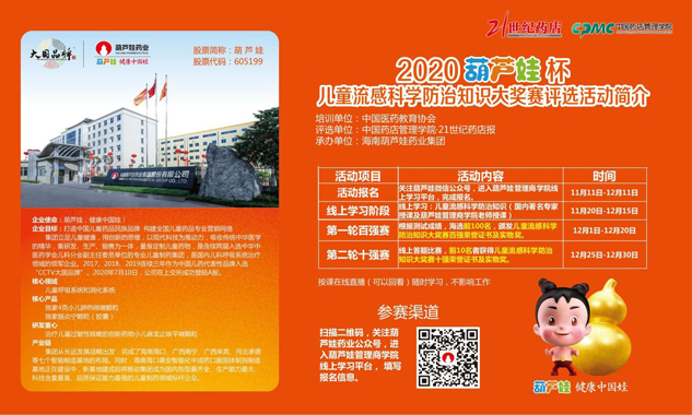据世界卫生组织WHO统计,每年有5%~10%的成年人、20%~30%的儿童罹患流感,有300万~500万重症患者,造成25万~50万人死亡,儿童是流感的高发人群及重症病例的高危人群。尤其是在当下全球疫情肆虐之季,新冠防控工作依然不容放松,流感防治知识科普显得尤为重要。儿童是祖国的希望,民族的未来,关爱儿童健康成长是时代赋予fun88乐天堂·[中国]官方网站址的历史使命,为了能帮助更多的儿童科学防治流感、科学预防新冠肺炎,fun88乐天堂药业集团携手中国医药教育协会药店管理专业委员会(药店管理学院)和21世纪药店报特举办本次儿童流感科学防治知识大奖赛。